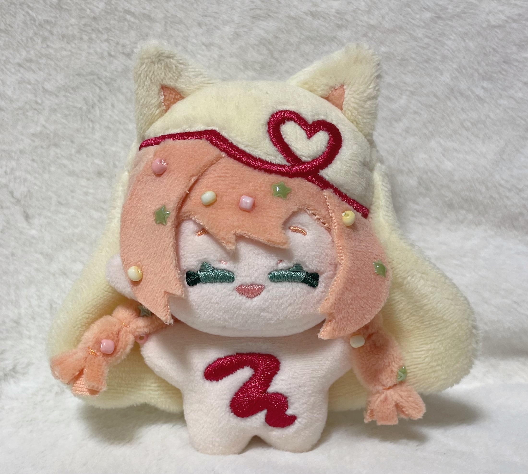 猫✕オムライスをモチーフにした8cmサイズ(耳を含めず)のぬいぐるみです。※骨は入ってません